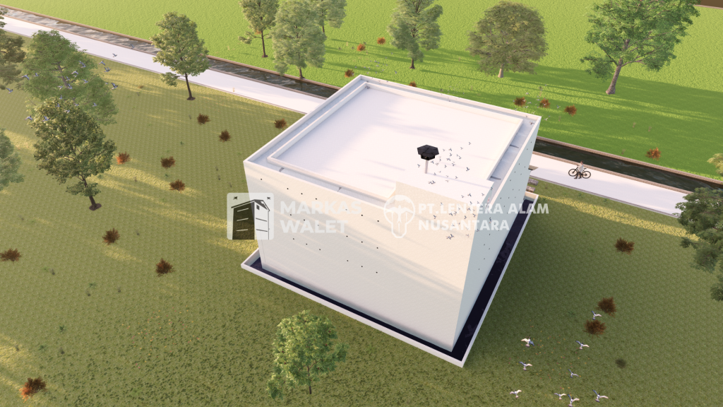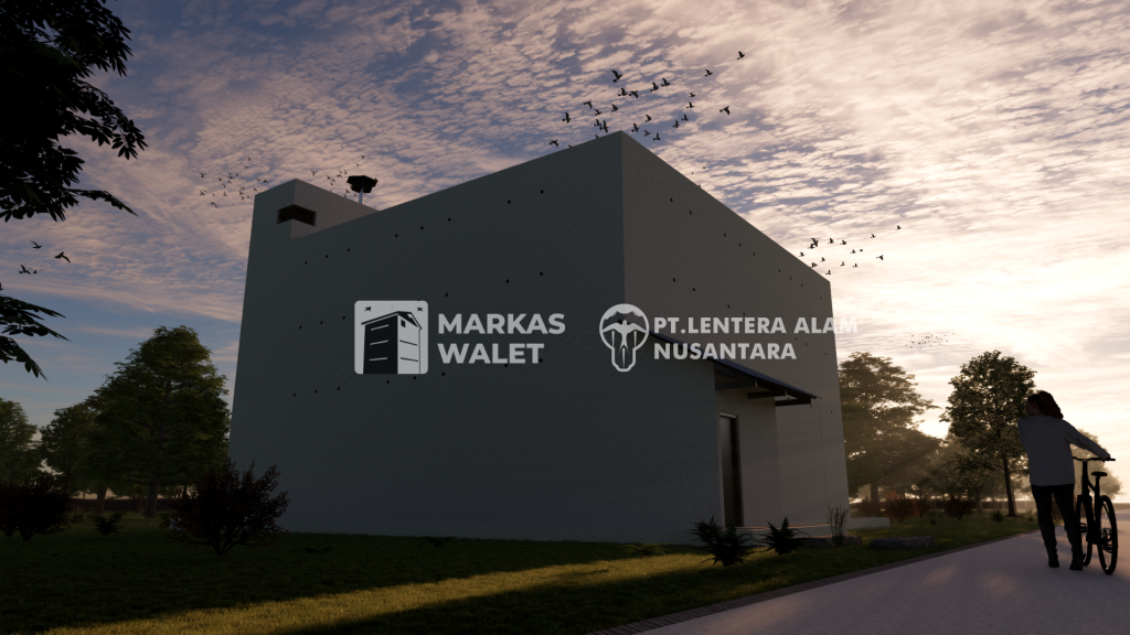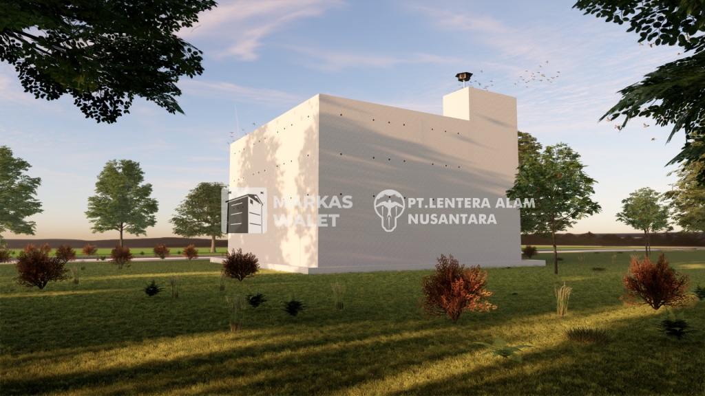 Gedung walet merupakan bangunan khusus yang didesain untuk menampung koloni burung walet yang biasa dijadikan sebagai sumber bahan baku sarang burung walet yang memiliki nilai ekonomis tinggi. Rumah walet yang dirancang dengan baik dapat memberikan lingkungan yang nyaman dan kondusif bagi burung walet sehingga dapat berkembang biak dan menghasilkan sarang yang berkualitas tinggi Dengan berbagai macam ukuran, desain gedung walet dimiliki oleh PT Lentera Alam Nusantara yang tentunya sesuai dengan keinginan dan luas tanah yang dimilikinya. Ukuran 14×14 meter persegi dari gedung walet merupakan salah satu di antaranya.